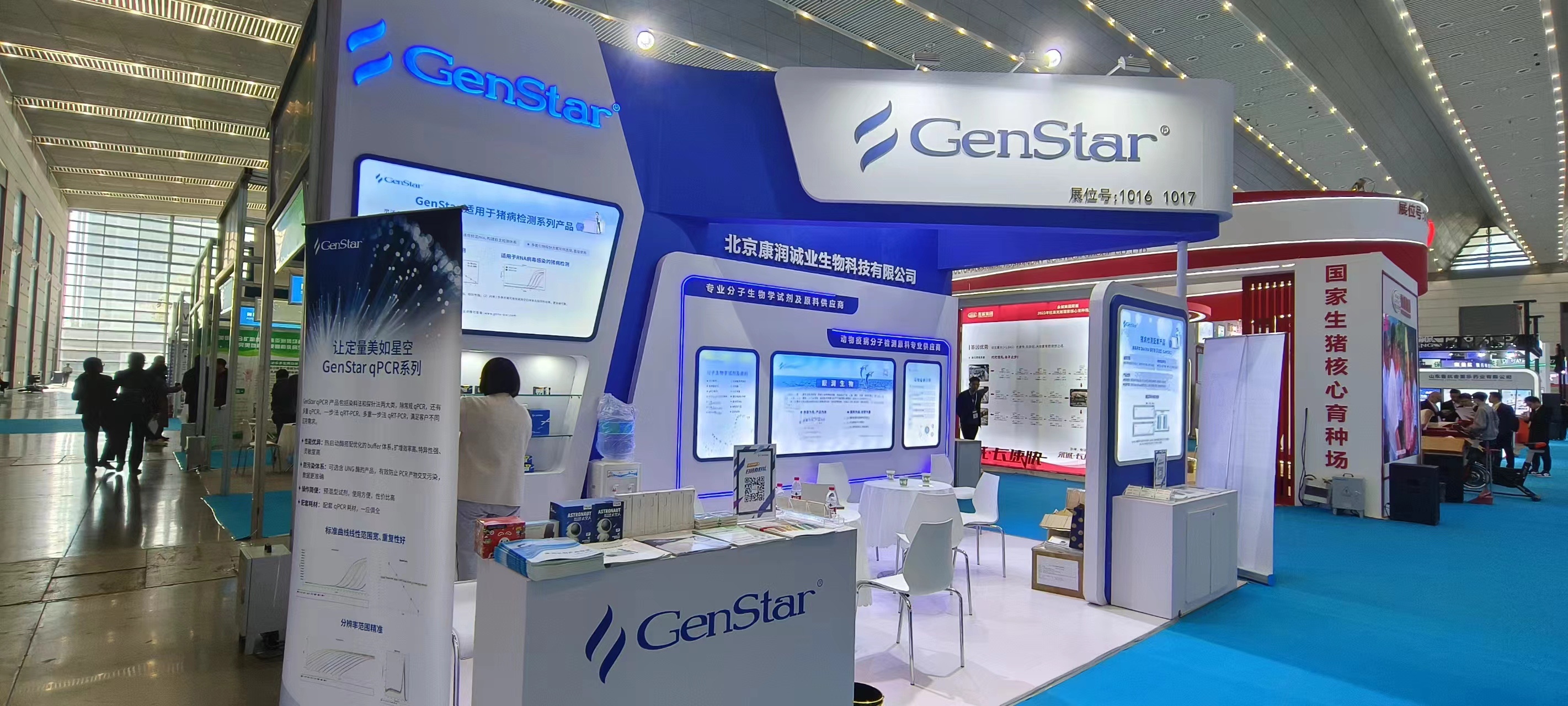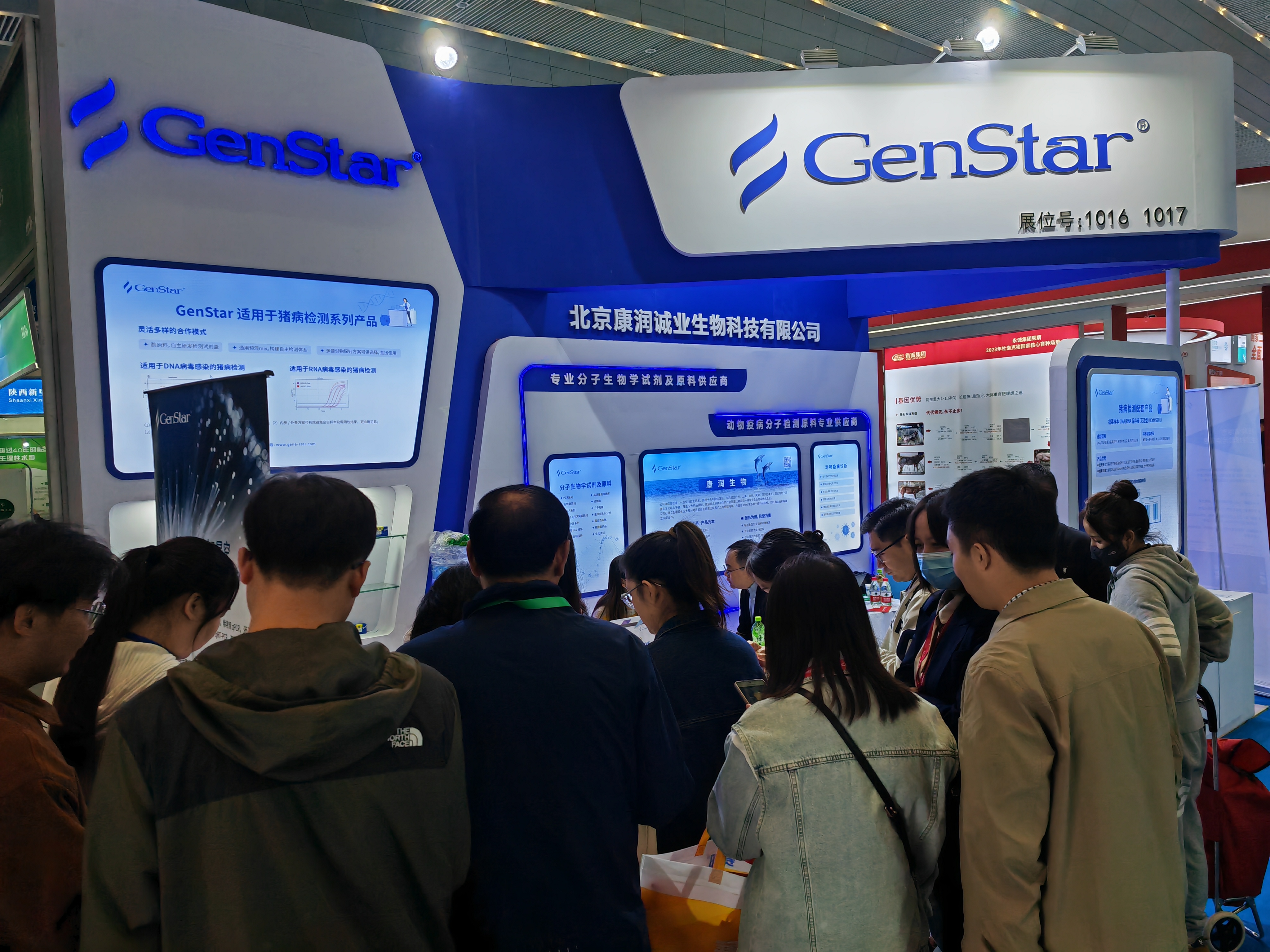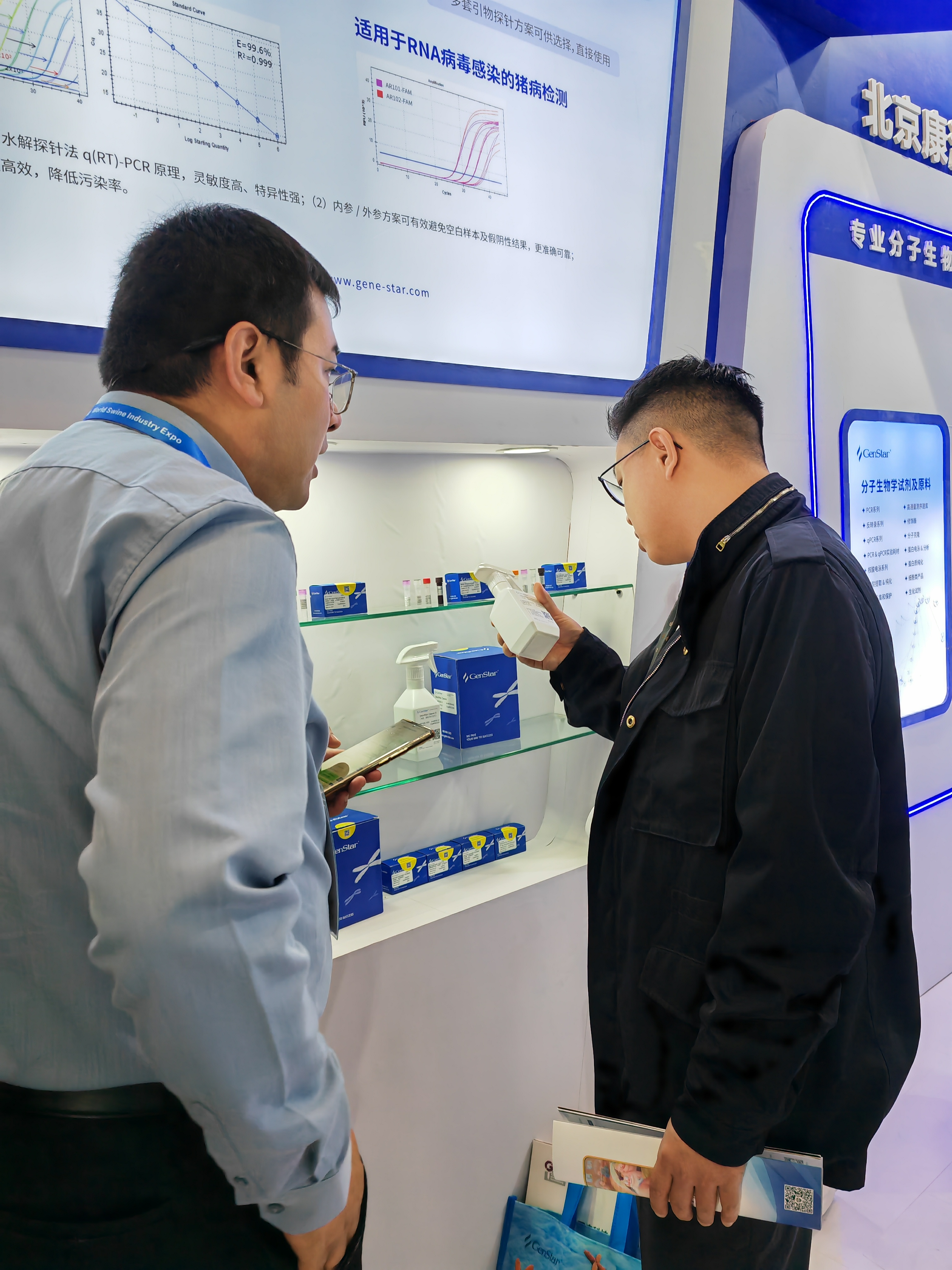 本次展會,GenStar集中展示了針對 DNA 病毒及 RNA 病毒檢測的探針法實時熒光定量 PCR 反應預混液、試劑盒、酶原料等配套產品,可應用于非洲豬瘟、豬藍耳、豬流行性腹瀉等豬病的科學研究,為 IVD 企業(yè)豬疫病檢測試劑盒開發(fā)提供原料。