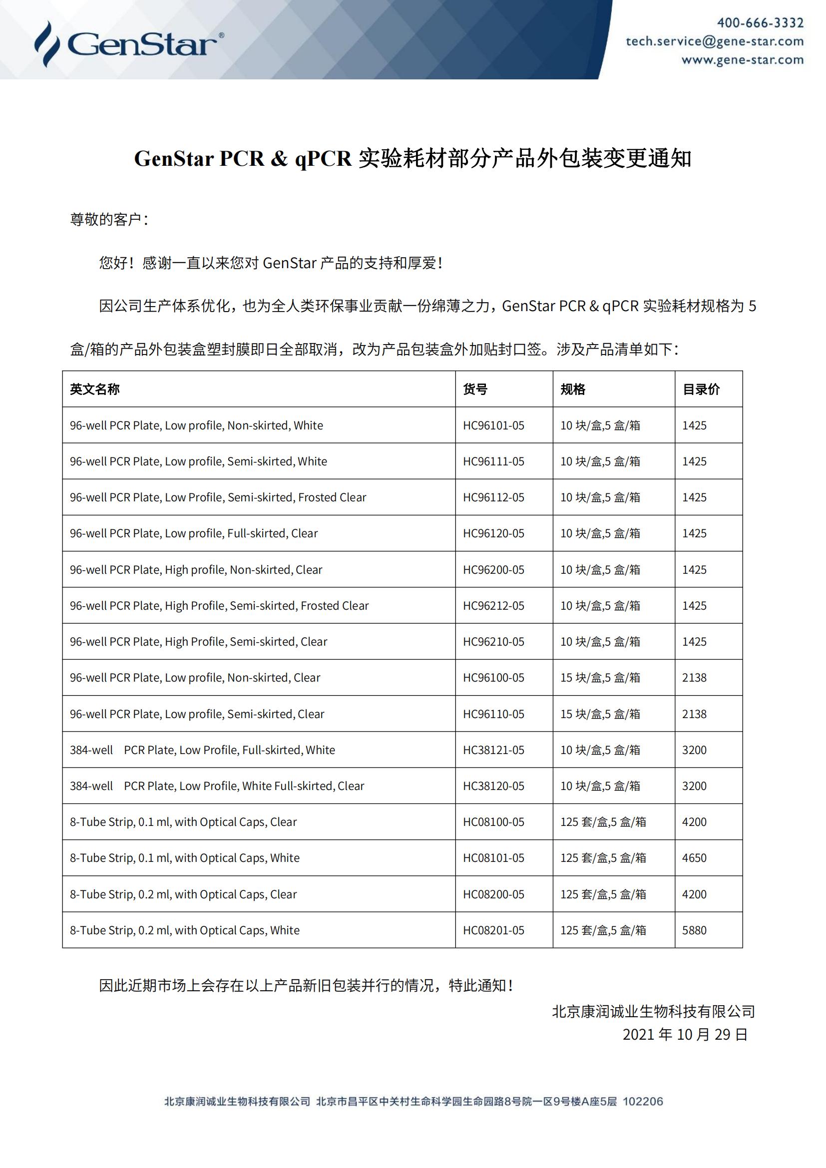 GenStar PCR & qPCR實(shí)驗(yàn)耗材部分產(chǎn)品外包裝變更通知